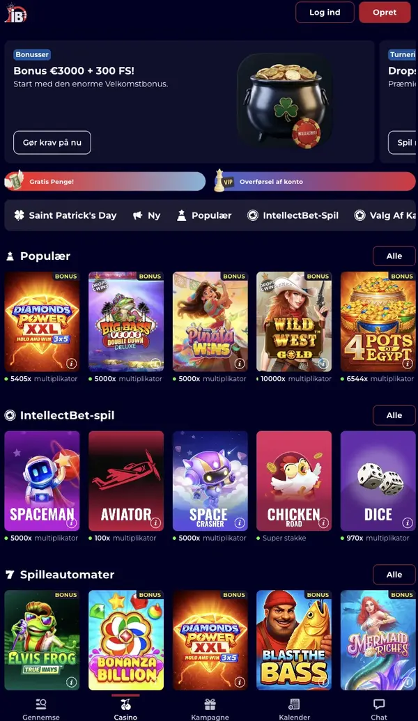 | Spilleautomater | Klassiske, video- og jackpot-titler, herunder IntellectBet spilleautomater fra store studier |